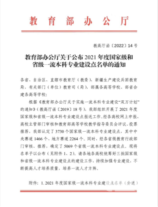 近日,教育部办公厅下发了《关于公布2021年度国家级和省级一流本科专业建设点名单的通知》(教高厅函〔2022〕14号)。我校数字媒体技术、视觉传达设计、艺术与科技3个专业入选2021年度国家级一流本科专业建设点,网络与新媒体、表演、产品设计3个专业入选吉林省一流本科专业建设点。至此,我校共有10个一流本科专业建设点,其中国家级5个(动画、数字媒体艺术、数字媒体技术、视觉传达设计、艺术与科技)、省级5个(广告学、环境设计、网络与新媒体、表演、产品设计)。