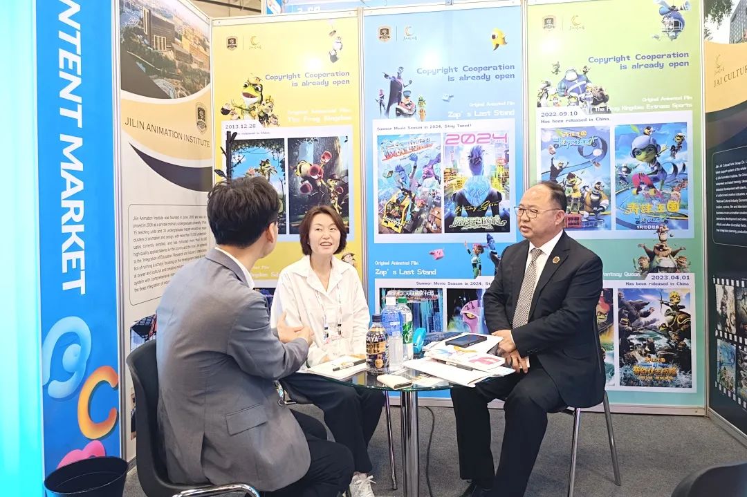 此次吉林动画学院受邀参展,与来自韩国、日本、印度尼西亚、中国香港等国家和地区的参展商和买家就我校原创3D动画电影《青蛙王国》系列,科幻动画电影《疯狂电脑城》国际发行,动画、影视联合创作等事项进行洽谈。郑立国受邀担任开幕式剪彩嘉宾,并代表中国电视艺术家协会动漫艺术委员会参加全球提案大会(BCM Global Pitching)颁奖典礼,为最佳内容奖颁奖。