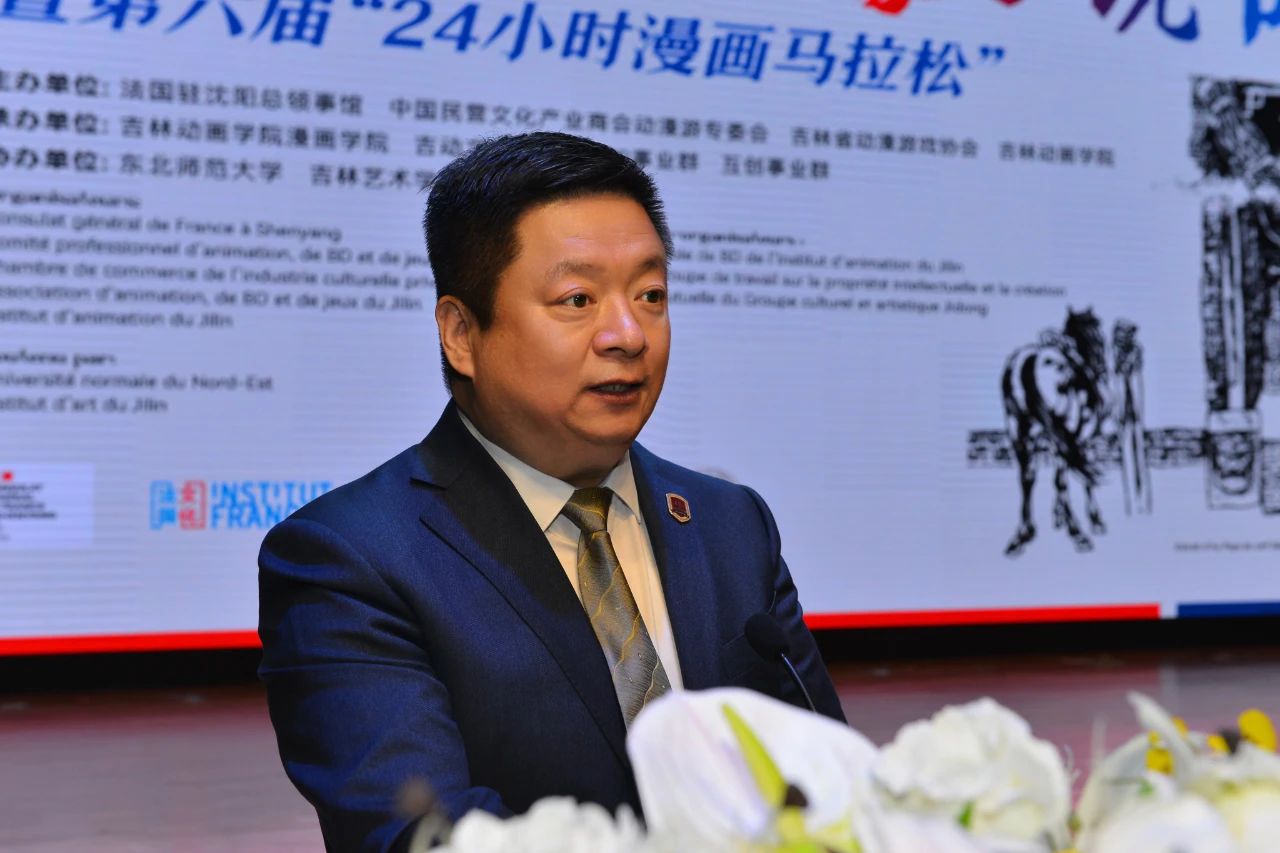 岳武在致辞中说:本次活动,具有很特别的意义。既是强化中法文化交流的实际行动,也是积极推进“吉动文化”的重要体现。希望通过本次活动,能与国内外院校建立长期、稳定、友好的互动模式,坚持传承创新,架构视觉对话,为漫画创作提供取之不尽的灵感和力量。吉林动画学院也将以最诚挚的方式提供给广大漫画家开放交流的平台。希望与会的专家学者、广大师生以此次学术交流会为契机,博采学术、开拓视野、踔厉奋发、砥砺前行,在不断的沟通交流中,积累资源,互取所长,共同发展。