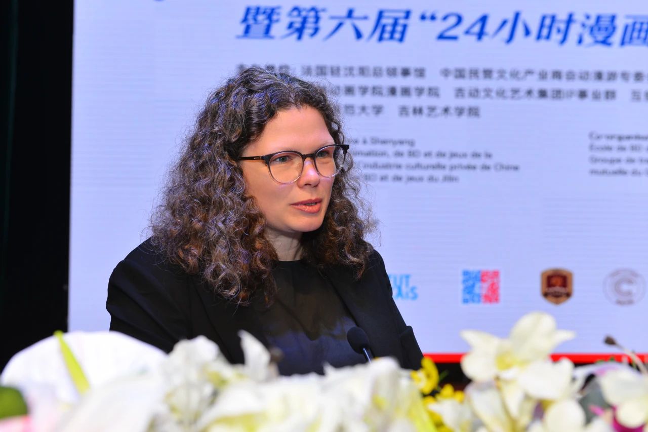 夏莱娜在致辞中指出,此次活动为中法两国漫画作家以画会友提供了绝佳平台。吉林动画学院作为中法文化之春的长期合作伙伴,一如既往地给予活动高品质的支持。值此中法建交60周年庆典来临之际,法国将以“人文交流为中心”,希望通过本次活动,能够切实激励两国漫画家创造出更多优秀的漫画作品。同时预祝活动取得圆满成功。