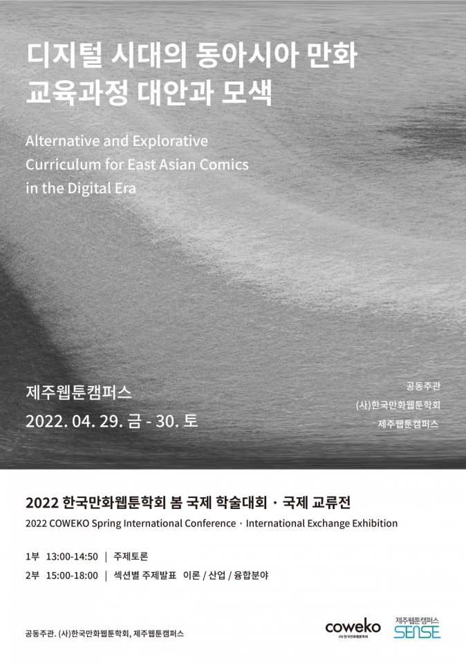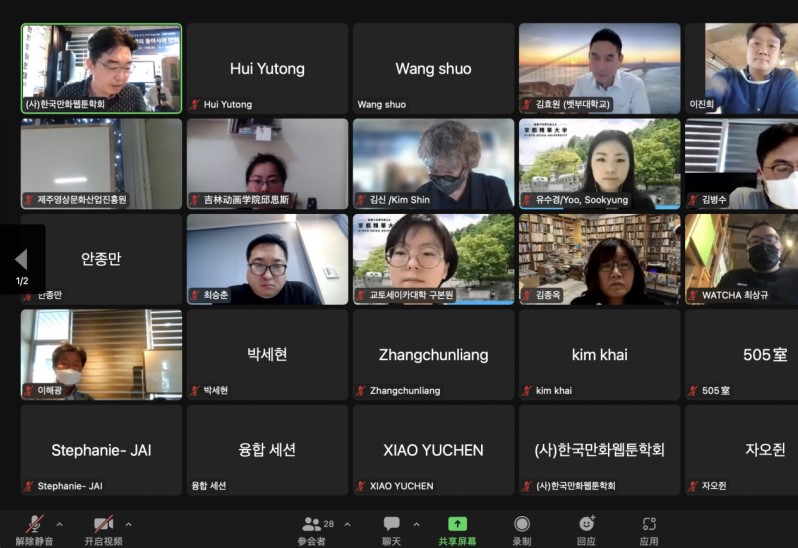2022韩国漫画网络漫画学会春季国际学术大会由韩国漫画网络漫画学会、济州网络漫画校园共同举办,此次学术大会以“数字时代东亚漫画教育课程对策及探索”为主题,邀请了来自韩国、中国、美国、马来西亚、日本五个国家的27名高校教授、行业专家参会。会议以线下+线上相结合的形式开展,讨论各国漫画、网络漫画教育课程的现状及发展方案。